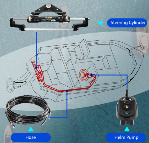 Bộ Lái Thuỷ Lực Cho Máy Gắn Ngoài (Yamaha, Suzuki, Mercury đều được) dưới 150HP, đầy đủ phụ kiện